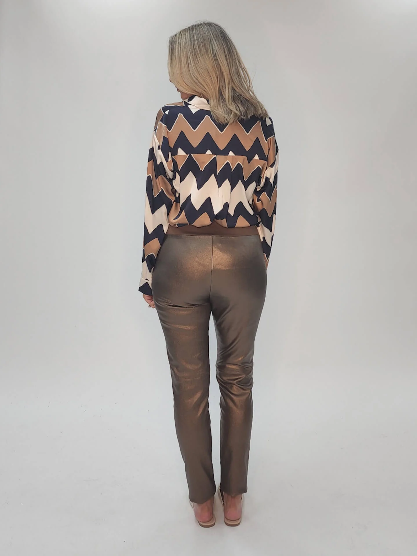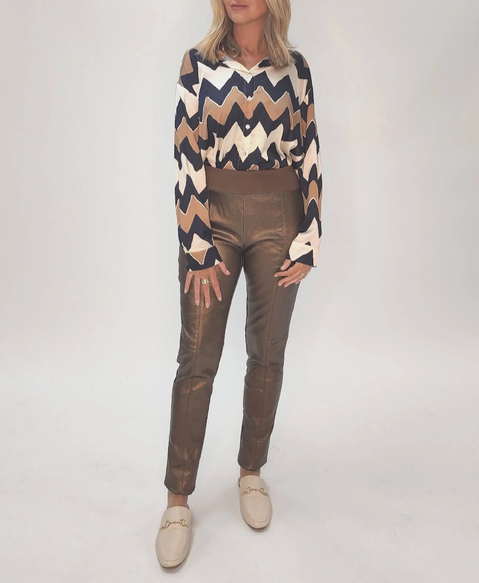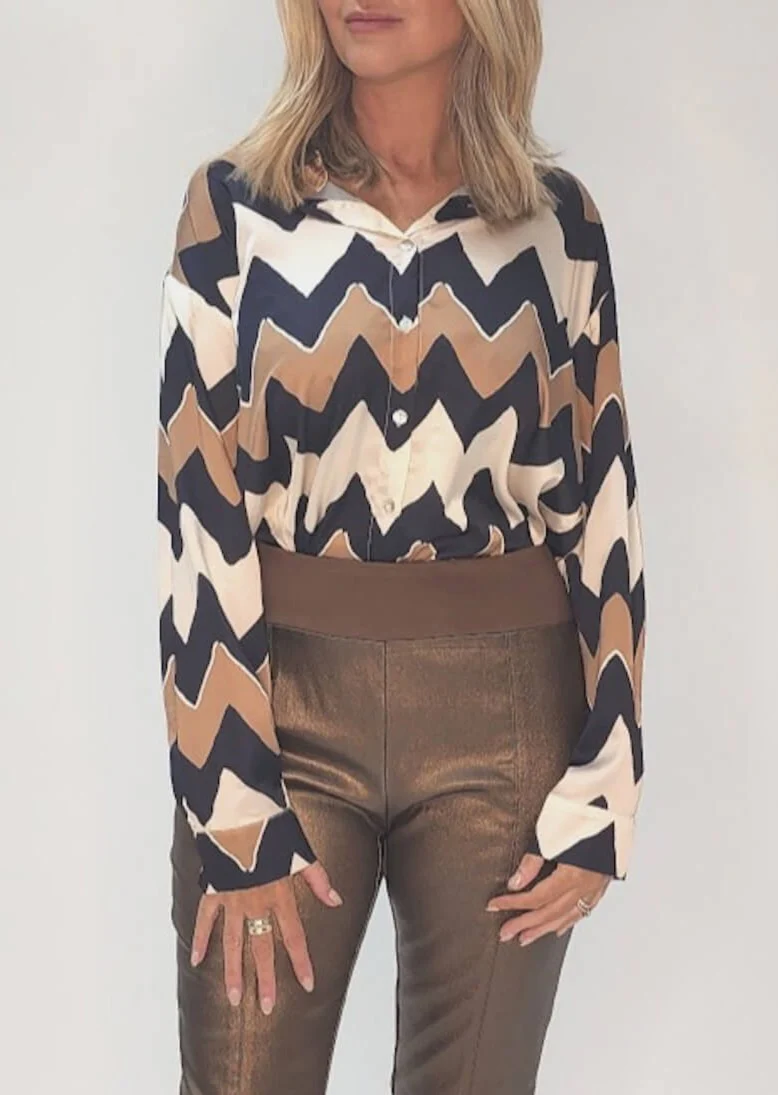 This stunning chevron print shirt is crafted from premium satin material, offering a smooth and luxurious feel. The fabric drapes elegantly, providing a comfortable and stylish fit perfect for both casual and semi-formal occasions.