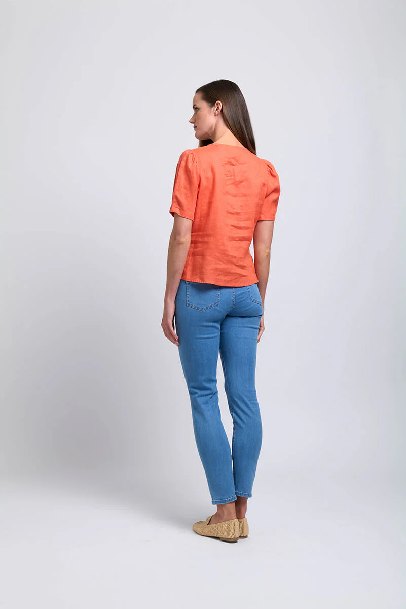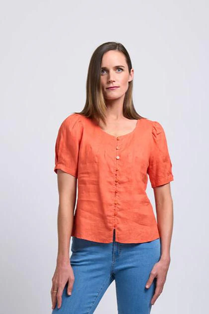 Perfectly versatile, this blouse can be paired with jeans for a casual outing or dressed up with tailored trousers for a more sophisticated appearance. Its bold orange hue adds vibrancy to any outfit, making it a standout addition to your wardrobe.