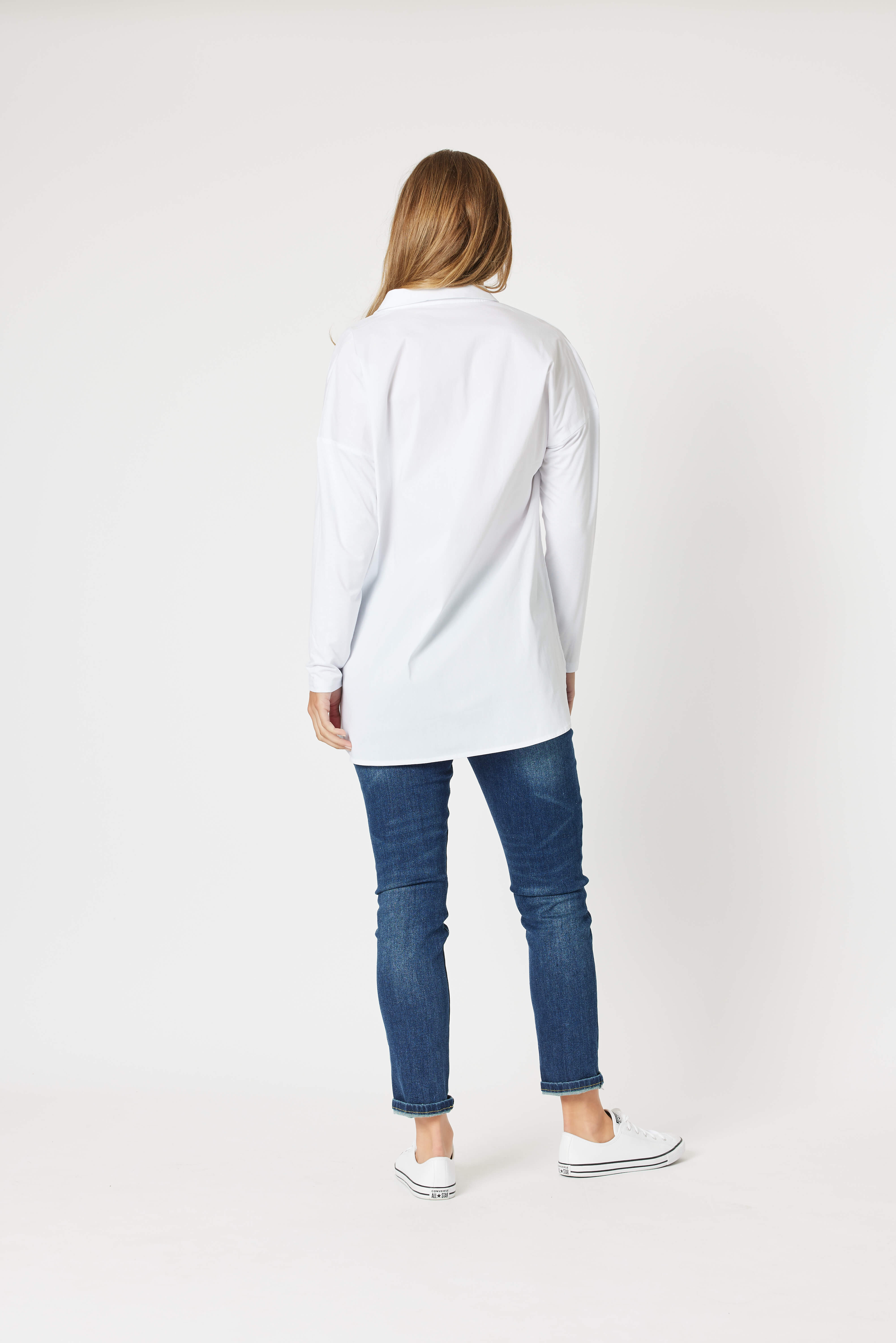 Pair it with jeans for a laid-back weekend look or tuck it into tailored trousers for a chic office ensemble. This versatile white shirt is an essential wardrobe staple that transcends seasons and trends.