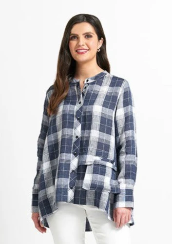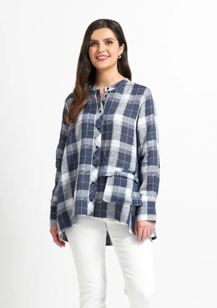 The shirt comes with thoughtful design details, such as a button-front closure, a rounded hem for a flattering silhouette, and a modern asymmetrical pocket for added style. Pair it with jeans or leggings for a relaxed day out or dress it up with tailored pants for a smart-casual look.